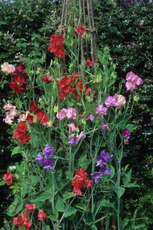Sweet Peas in a garden.